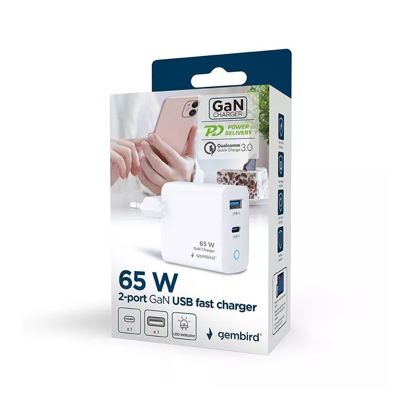 CHARGER USB 65W 2PORT/TA-UC-PDQC65L-W-01 GEMBIRD