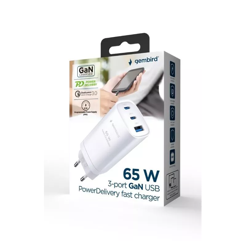 CHARGER USB UNIVERSAL QC3.0/TA-UC-PDQC65-01-W GEMBIRD