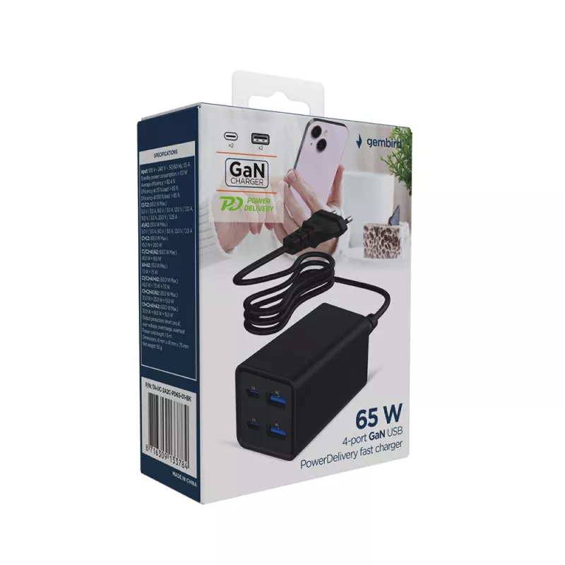 CHARGER USB UNIVERSAL 4P 65W/TA-UC-2A2C-PD65-01-BK GEMBIRD