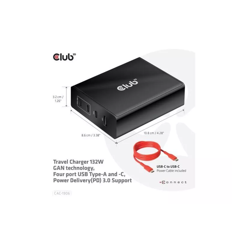 MOBILE TRAVEL CHARGER USB-C/132W GAN CAC-1906 CLUB3D