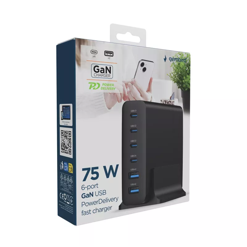 CHARGER USB UNIVERSAL 6P 75W/TA-UC-2A4C-PD75-01-BK GEMBIRD