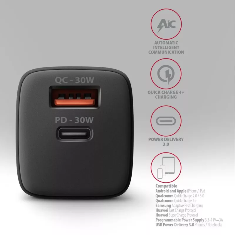 - AXAGON ACU-PQ30 PD3.0 & QC4+ 2XOUTPUTS WALL CHARGER 30W