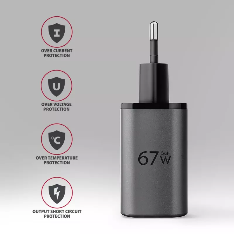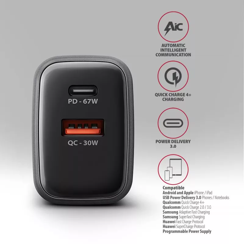- ACU-PQ67 PD3.0 & QC4+ 2XOUTPUTS WALL CHARGER 67W
