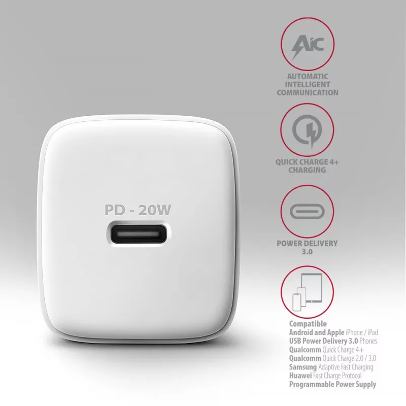 MOBILE CHARGER WALL USB-C 20W/1PORT WHITE ACU-PD20W AXAGON