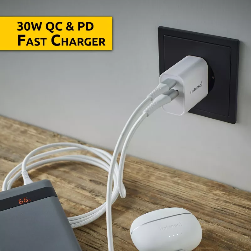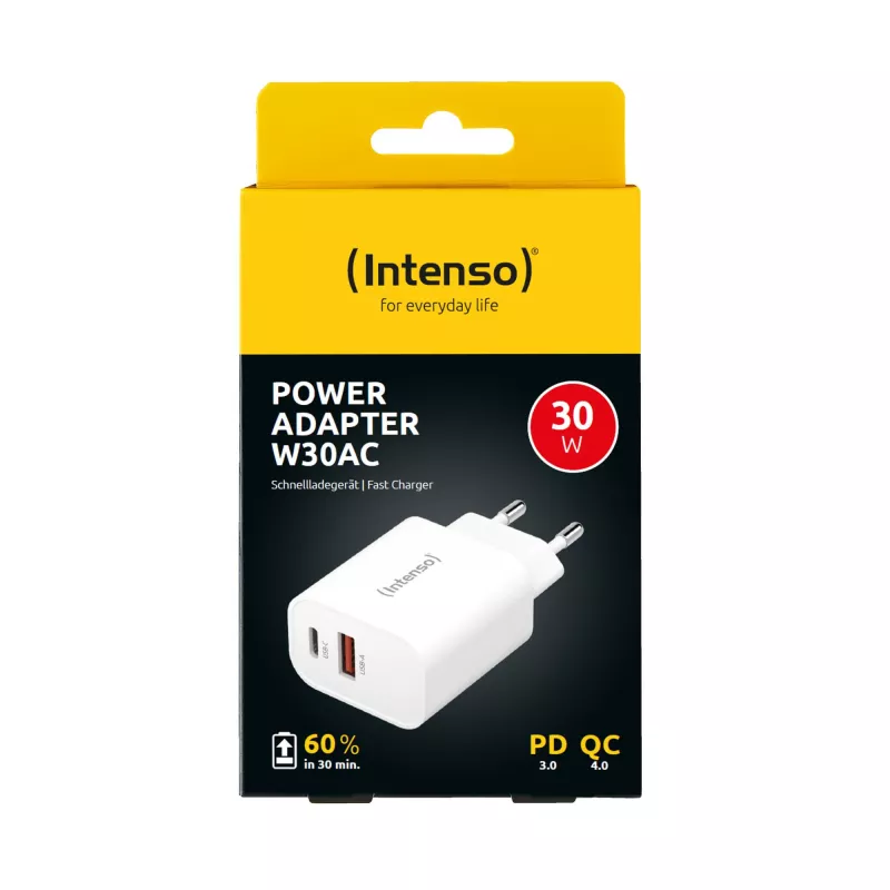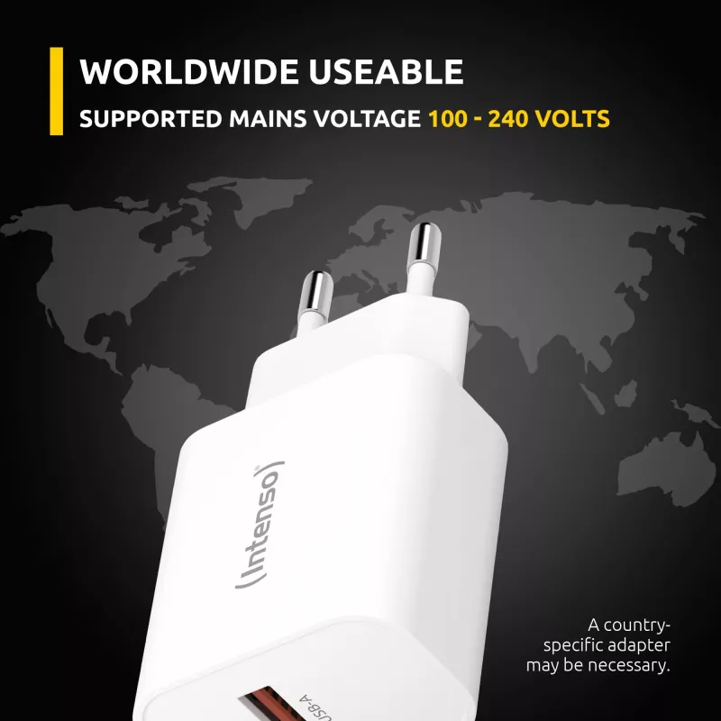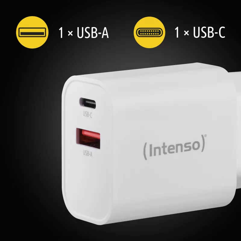 - INTENSO POWER ADAPTER USB-A/USB-C/7803012. CHARGER TYPE: INDOOR, POWER SOURCE TYPE: AC, CHARGER COMPATIBILITY: UNIVERSAL. INPUT VOLTAGE: 100 - 240 V, MAXIMUM OUTPUT VOLTAGE: 20 V. USB TYPE-C PORTS QUANTITY: 1, FAST CHARGING. PRODUCT COLOUR: WHITE