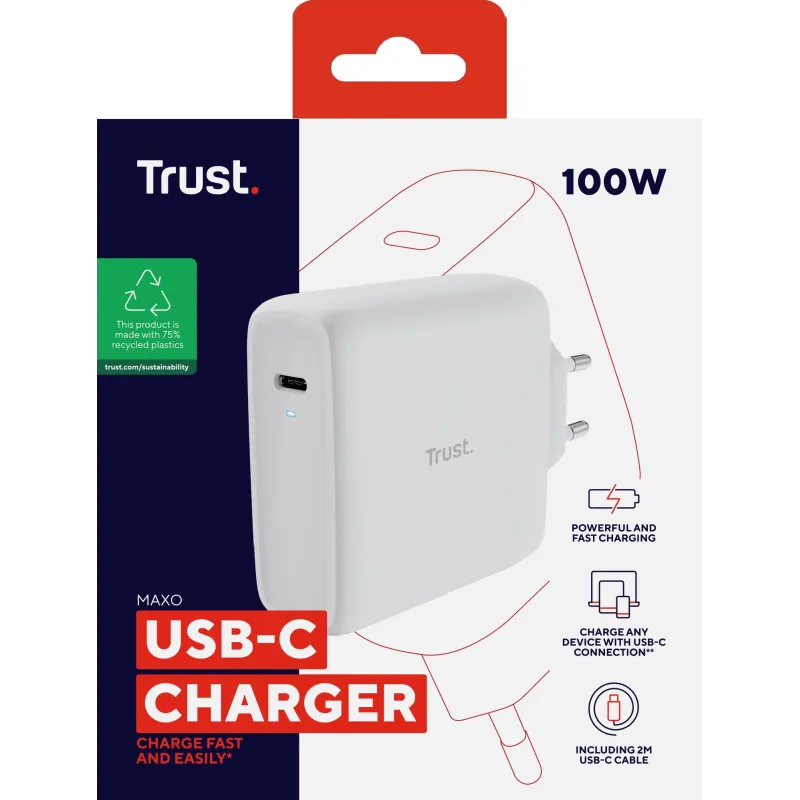 - TRUST MAXO. CHARGER TYPE: INDOOR, POWER SOURCE TYPE: AC, CHARGER COMPATIBILITY: UNIVERSAL. INPUT VOLTAGE: 100 - 240 V, MAXIMUM OUTPUT VOLTAGE: 5 V. USB TYPE-C PORTS QUANTITY: 1, POWER PROTECTION FEATURES: OVER CURRENT, OVERHEATING, OVERLOAD. CABLE LENGTH: