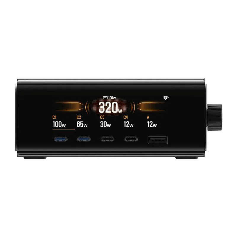 RAPID Pro , Charger compatibility Universal , Power source type AC , 4xUSB Type-C ports quantity , 1xUSB Type-A ports quantity , Fast charging Yes , 5xNumber of simultaneously connected devices (max) , Charger type Indoor , Product colour Black , Maximum power 320 W , Weight 885 g