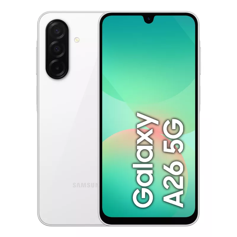 Model Galaxy A26 , Colour White , Storage 128 GB , RAM 6 GB , Screen 6.7 " , Flat , Super AMOLED , 1080 x 2340 pixels , Network 5G , SIM card NanoSIM , Wi-Fi Wi-Fi 5 (802.11ac) , Bluetooth Yes , OS Android 15 , Battery capacity 5000 mAh , IP IP67 , USB-C charging power 25 W , Weight 200 g , Weight 0.2 kg