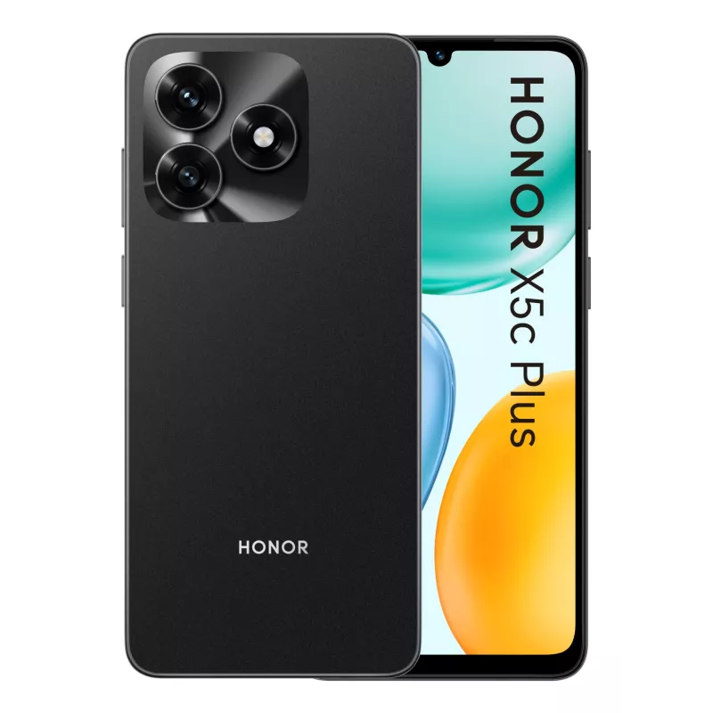 Model HONOR X5C PLUS , Colour Black , Storage 128 GB , RAM 4 GB , Screen 6.74 " , Flat , 720 x 1600 pixels , CPU Helio G81 , OS MagicOS 9.0 , Battery capacity 5260 mAh , IP IP54 , Weight 186 g , Weight 0.189 kg