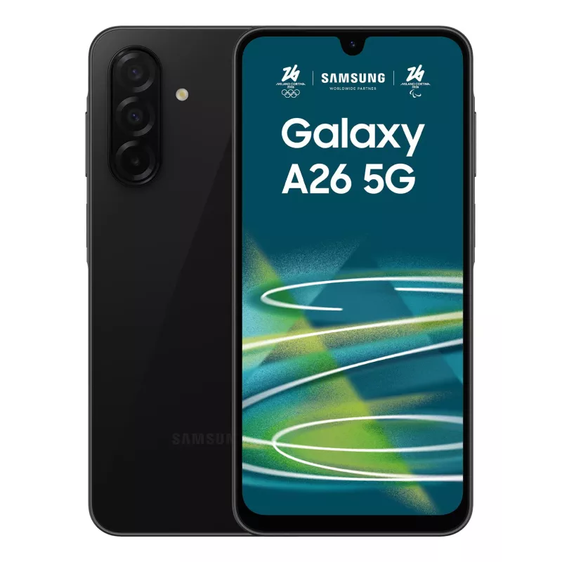 Model Galaxy A26 , Colour Black , Storage 256 GB , RAM 8 GB , Screen 6.7 " , Flat , Super AMOLED , 1080 x 2340 pixels , Network 5G , SIM card NanoSIM , Wi-Fi Wi-Fi 5 (802.11ac) , Bluetooth Yes , OS Android 15 , Battery capacity 5000 mAh , IP IP67 , USB-C charging power 25 W , Weight 200 g , Weight 0.2 kg