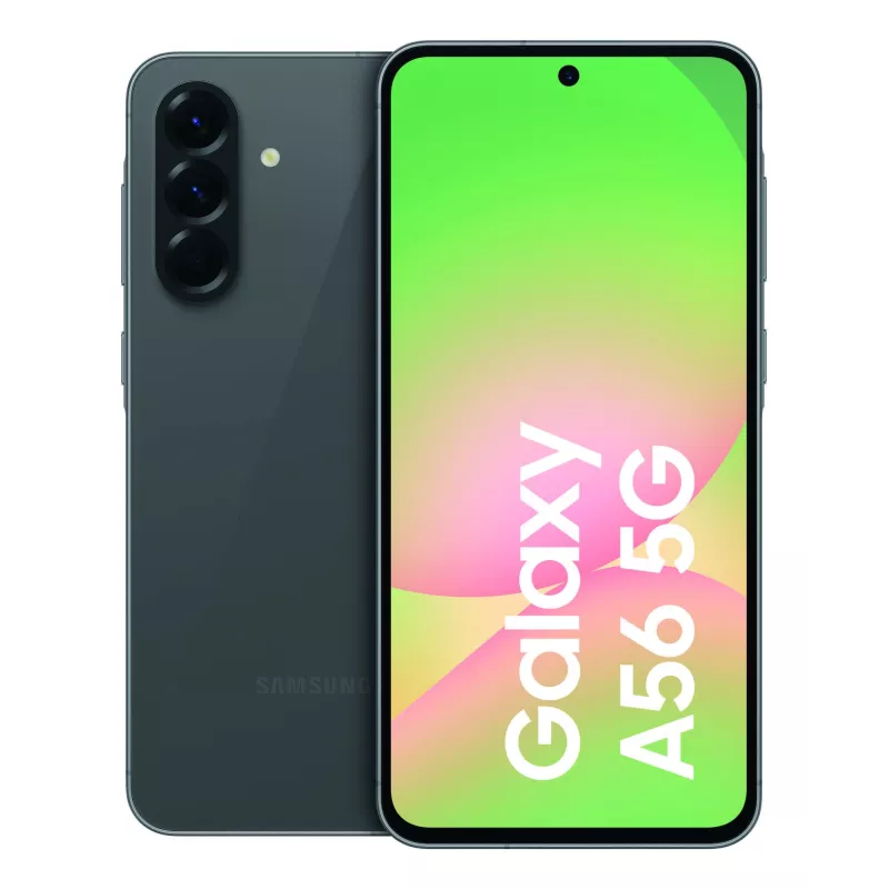Model Galaxy A56 , Colour Graphite , Storage 128 GB , RAM 8 GB , Screen 6.7 " , Flat , Super AMOLED , 1080 x 2340 pixels , Network 5G , SIM card NanoSIM + eSIM , Wi-Fi Wi-Fi 6 (802.11ax) , Bluetooth Yes , Battery capacity 5000 mAh , IP IP67 , USB-C charging power 45 W , Weight 198 g , Weight 0.198 kg