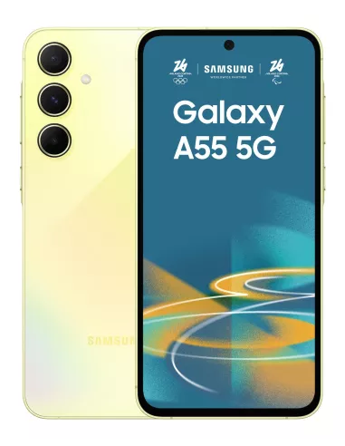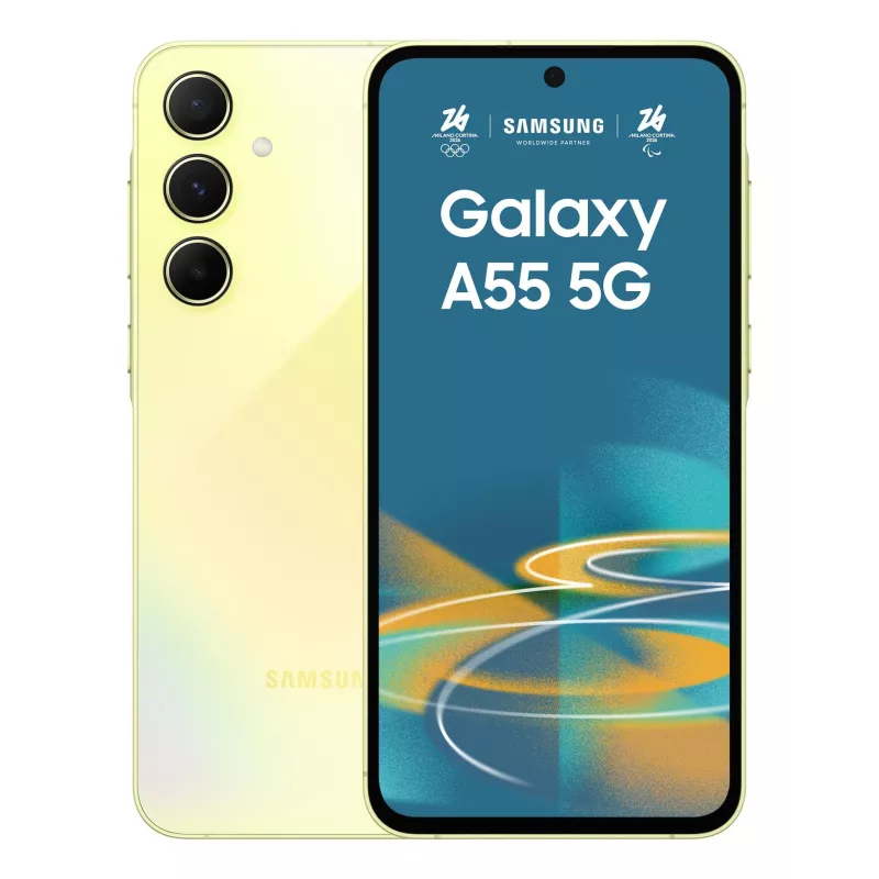 Model Galaxy A55 , Colour Yellow , Storage 128 GB , RAM 8 GB , Screen 6.6 " , Flat , Super AMOLED , 1080 x 2340 pixels , Network 5G , SIM card NanoSIM + eSIM , Bluetooth Yes , OS Android 14 , Battery capacity 5000 mAh , IP IP67 , Weight 213 g , Weight 0.213 kg