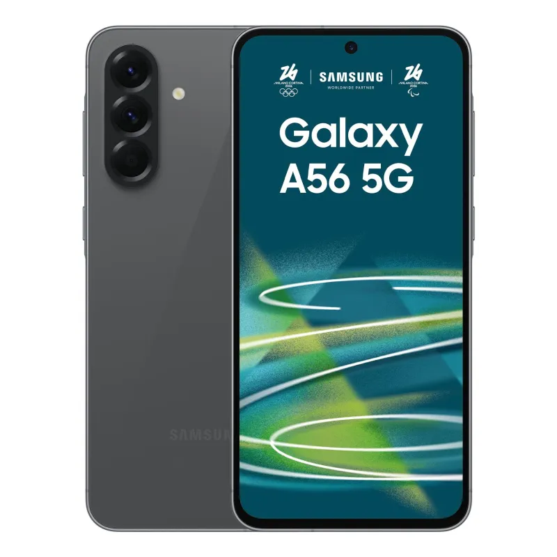 Model Galaxy A56 , Colour Graphite , Storage 256 GB , RAM 8 GB , Screen 6.7 " , Flat , Super AMOLED , 1080 x 2340 pixels , CPU 1580 , Network 5G , SIM card NanoSIM + eSIM , Wi-Fi Wi-Fi 6 (802.11ax) , Bluetooth Yes , OS Android 15 , Battery capacity 5000 mAh , IP IP67 , USB-C charging power 45 W , Weight 198 g , Weight 0.198 kg