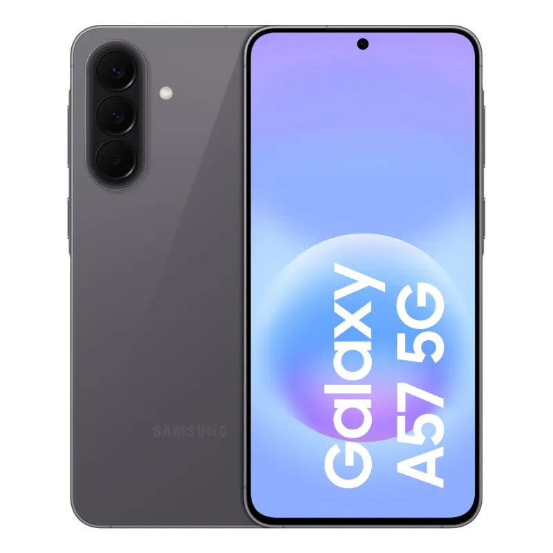 Model GALAXY A57 5G , Colour Grey , Storage 256 GB , RAM 8 GB , Screen 6.7 " , Flat , Super AMOLED Plus , 1080 x 2340 pixels , Network 5G , SIM card NanoSIM + eSIM , Wi-Fi Wi-Fi 6E (802.11ax) , Bluetooth Yes , OS Android 16.0 , Battery capacity 5000 mAh , IP IP68 , USB-C charging power 45 W , Weight 179 g , Weight 0.179 kg