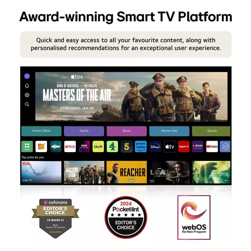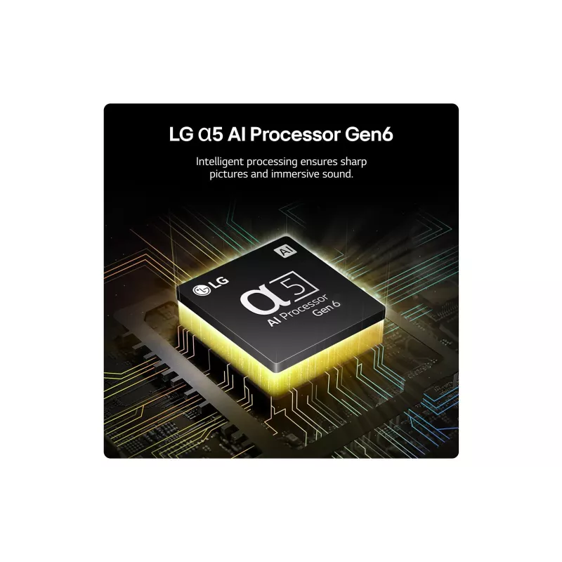 - A5 AI PROCESSOR GEN6/AI ACOUSTIC TUNING/AI SOUND/LG CHANNELS/LG SOUND SYNC/THINQT/WORKS WITH AMAZON ALEXA/WORKS WITH APPLE HOMEKIT
