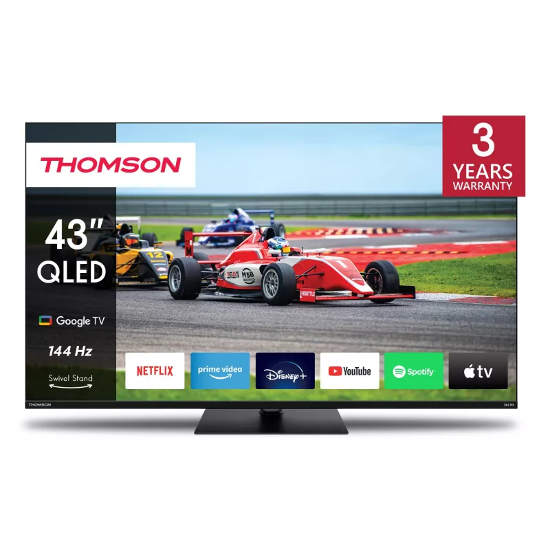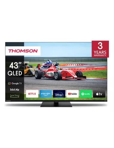 - THOMSON 43QG7C14. DISPLAY DIAGONAL: 109.2 CM (43"), DISPLAY RESOLUTION: 3840 X 2160 PIXELS, HD TYPE: 4K ULTRA HD, DISPLAY TECHNOLOGY: QLED, SCREEN SHAPE: FLAT, LED BACKLIGHTING TYPE: DIRECT-LED. SMART TV. NATIVE ASPECT RATIO: 16:9. DIGITAL SIGNAL FORMAT S