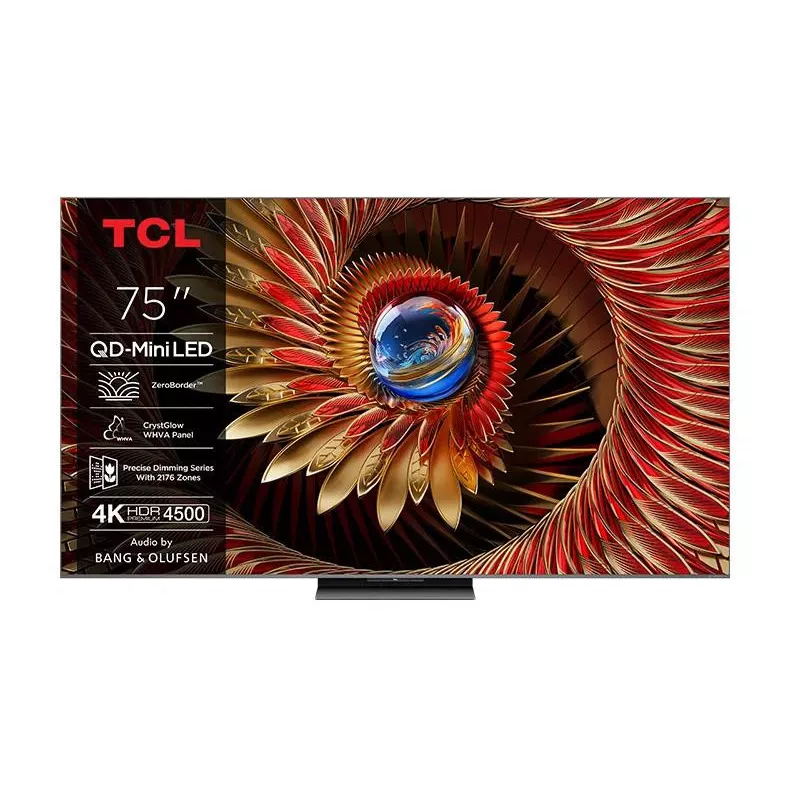 - TCL 75Q8C. DISPLAY DIAGONAL: 190.5 CM (75"), DISPLAY RESOLUTION: 3840 X 2160 PIXELS, HD TYPE: 4K ULTRA HD, DISPLAY TECHNOLOGY: LCD, SCREEN SHAPE: FLAT, LED BACKLIGHTING TYPE: QD MINILED. SMART TV. DISPLAY BRIGHTNESS: 4500 CD/M , NATIVE ASPECT RATIO: 16:9.