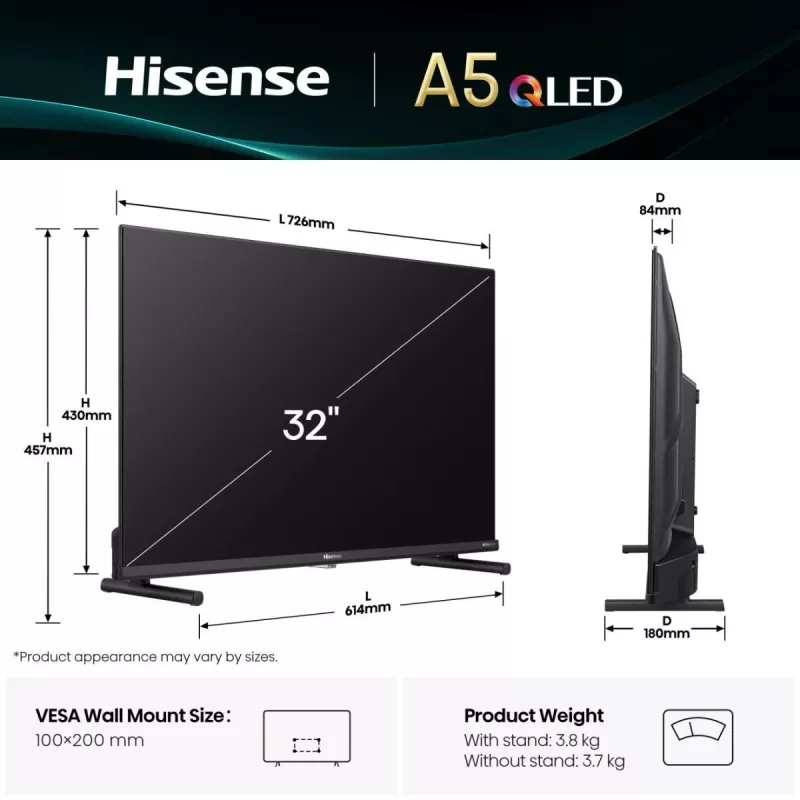 TV Set, HISENSE, 32 ", Full HD, 1920 x 1080 pixels, Flat, 16:9, QLED, 32A5Q