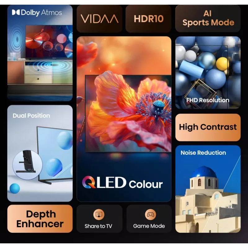 32 " , QLED , Flat , 16:9 , Contrast 1200:1 , 1920 x 1080 pixels , Smart TV Yes , Wi-Fi Yes , Weight 3.8 kg
