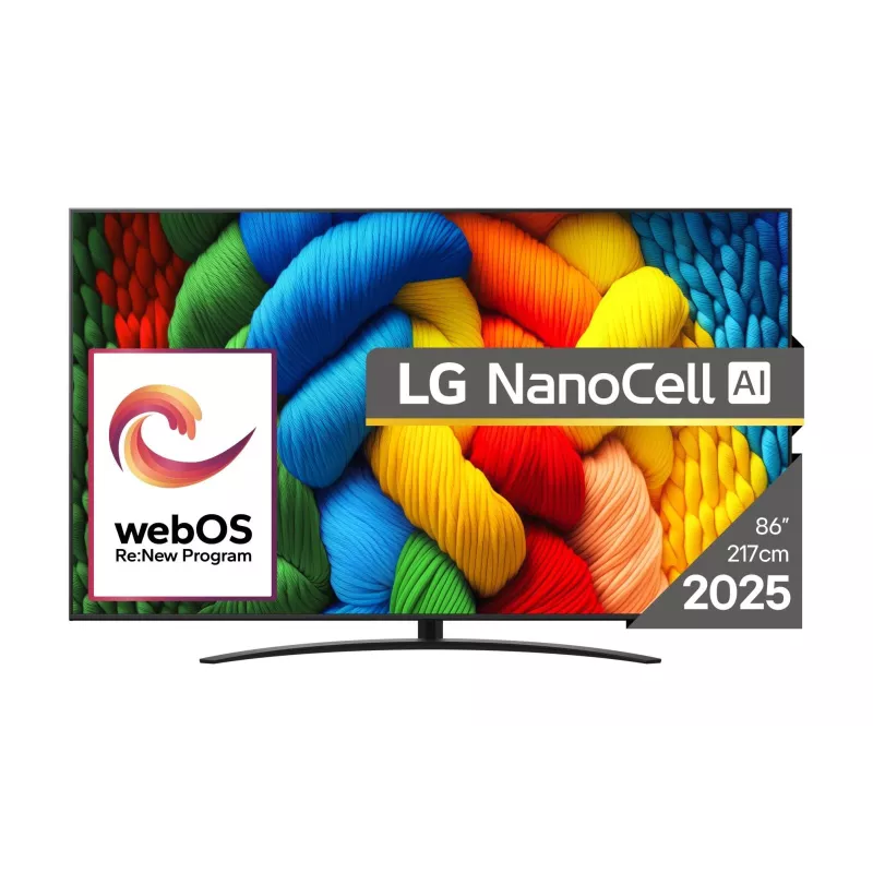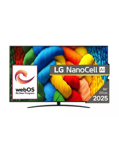 - LG NANOCELL AI 86NANO81A3A. DISPLAY DIAGONAL: 2.18 M (86"), DISPLAY RESOLUTION: 3840 X 2160 PIXELS, HD TYPE: 4K ULTRA HD, DISPLAY TECHNOLOGY: NANOCELL, SCREEN SHAPE: FLAT, LED BACKLIGHTING TYPE: DIRECT-LED. SMART TV. NATIVE ASPECT RATIO: 16:9. DIGITAL SIG