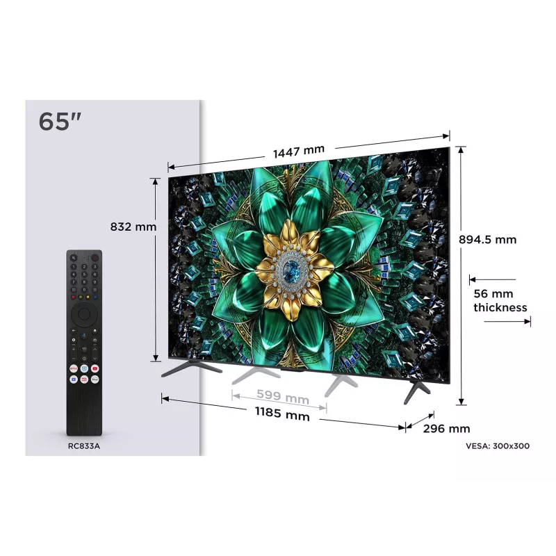 65 " , QD-Mini LED , Flat , 16:9 , 3840 x 2160 pixels , Smart TV Yes , Wi-Fi Yes , Weight 17.2 kg