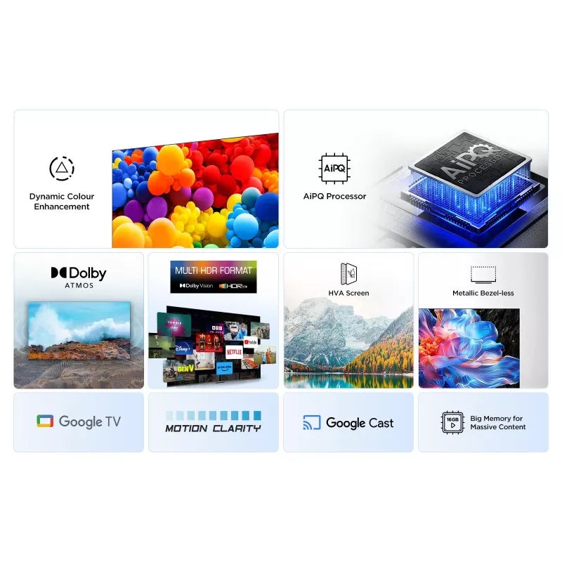 - 4K HDR DISPLAY/CHROMECAST BUILT-IN/HVA SCREEN/MOTION CLARITY/T-CAST
