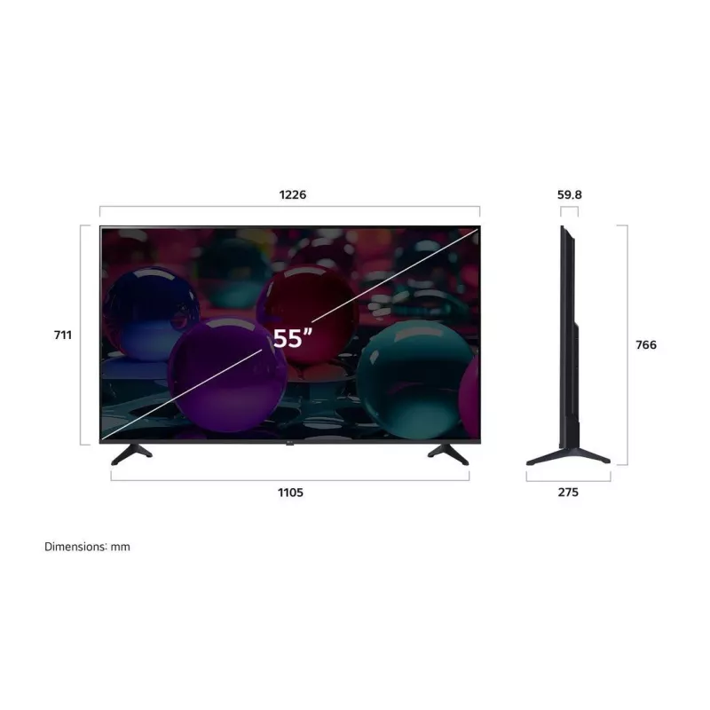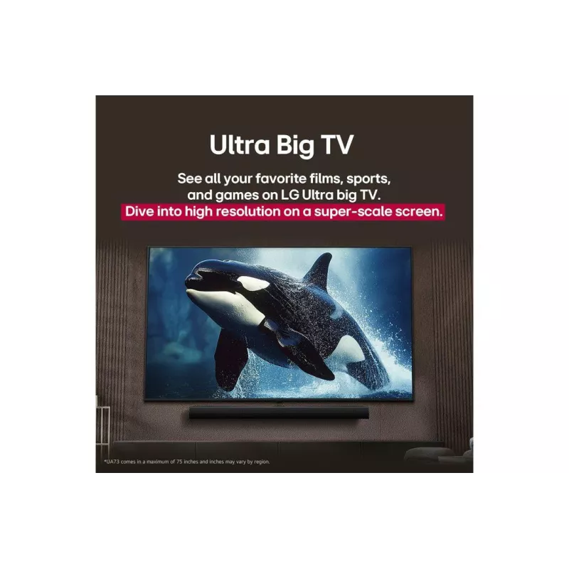 - LG UHD AI 55UA73003LA. DISPLAY DIAGONAL: 139.7 CM (55"), DISPLAY RESOLUTION: 3840 X 2160 PIXELS, HD TYPE: 4K ULTRA HD, DISPLAY TECHNOLOGY: LED, SCREEN SHAPE: FLAT, LED BACKLIGHTING TYPE: DIRECT-LED. SMART TV. NATIVE ASPECT RATIO: 16:9. DIGITAL SIGNAL FORM