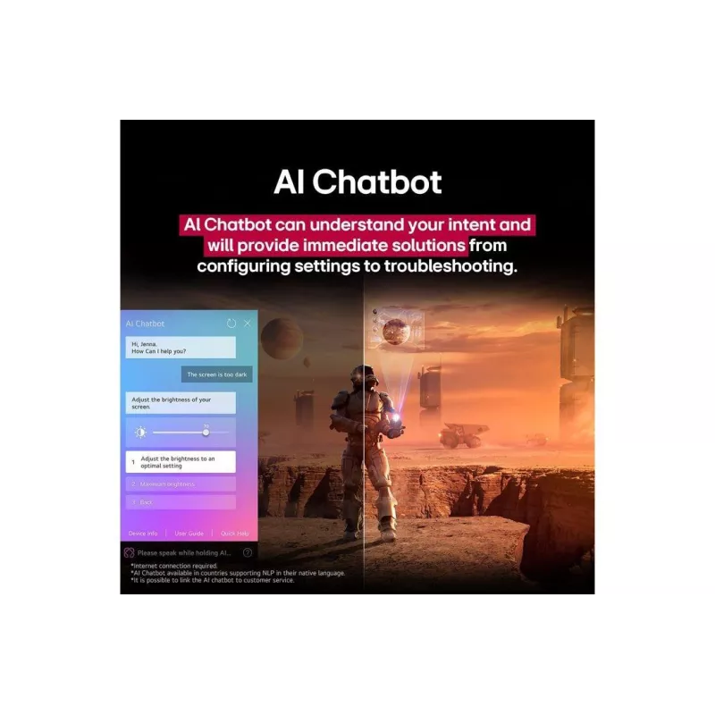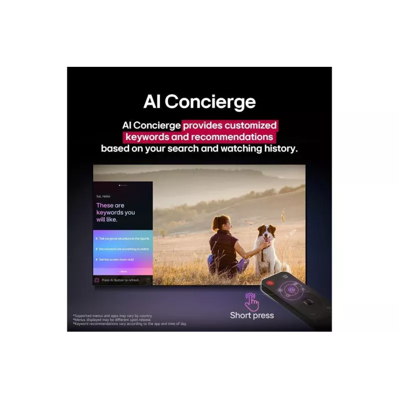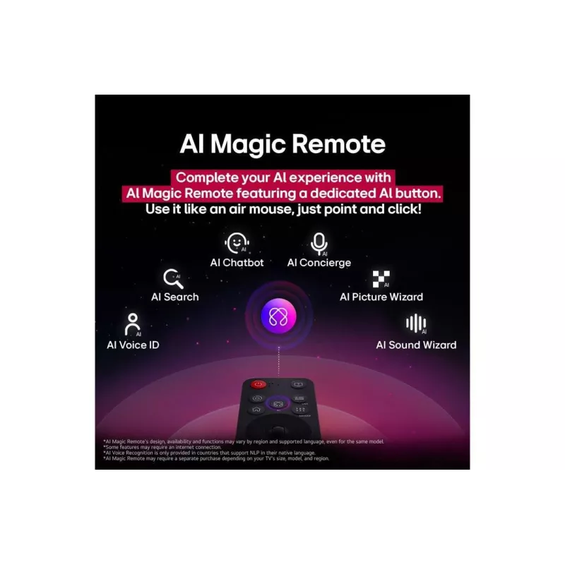 - AI SUPER UPSCALING 4K/BLUETOOTH SURROUND READY/FILMMAKER MODET/LG SOUND SYNC/THINQT/WORKS WITH APPLE HOMEKIT/WOW ORCHESTRA