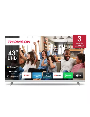 TV Set, THOMSON, 43", 4K/Smart, QLED, 3840x2160, Google TV, White, 43UG4S14W