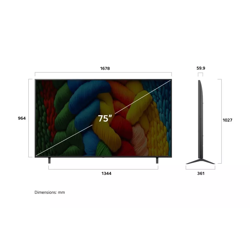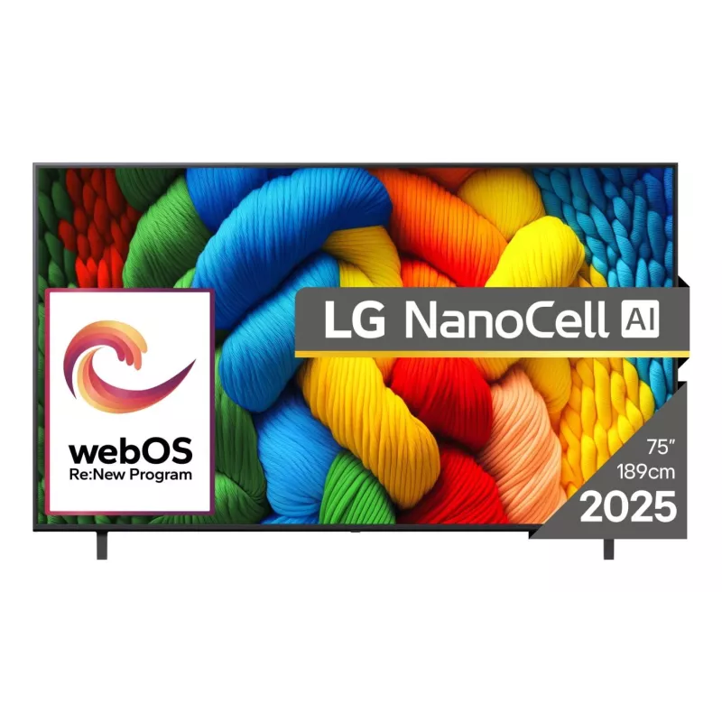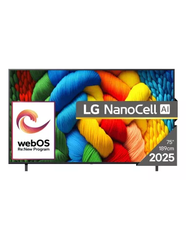 - LG NANOCELL AI NANO80 75NANO80A3B. DISPLAY DIAGONAL: 190.5 CM (75"), DISPLAY RESOLUTION: 3840 X 2160 PIXELS, HD TYPE: 4K ULTRA HD, DISPLAY TECHNOLOGY: LED, SCREEN SHAPE: FLAT, LED BACKLIGHTING TYPE: DIRECT-LED. SMART TV. NATIVE ASPECT RATIO: 16:9. DIGITAL
