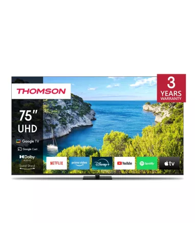 - THOMSON 75UG5C14. DISPLAY DIAGONAL: 190.5 CM (75"), DISPLAY RESOLUTION: 3840 X 2160 PIXELS, HD TYPE: 4K ULTRA HD, DISPLAY TECHNOLOGY: LED, SCREEN SHAPE: FLAT, LED BACKLIGHTING TYPE: DIRECT-LED. SMART TV. CONTRAST RATIO (TYPICAL): 4000:1, NATIVE ASPECT RAT