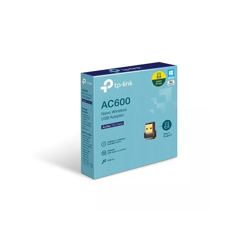 Type Adapter , Data transmission speed 600 Mbps , Antenna Type Omni-Directional , Wireless Transmit Power 20 dBm , Wireless Frequency Range 2.4/5 GHz , Included Accessories Archer T2U Nano, CD with materials, Manual