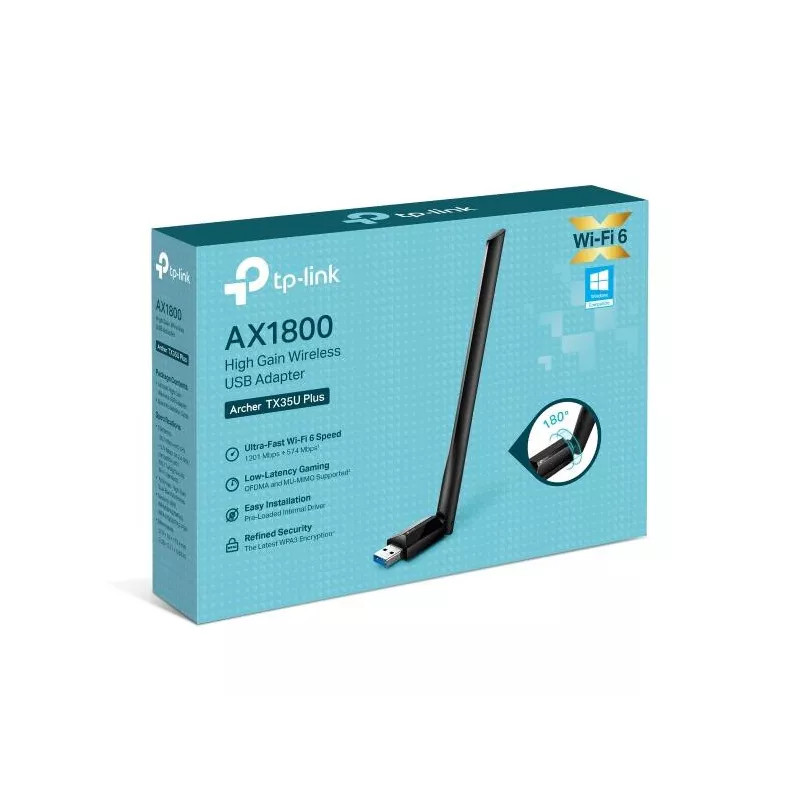 Type Adapter , Data transmission speed 1800 Mbps , Wireless Frequency Range 2.4-5Ghz , Included Accessories AX1800 High Gain Wireless USB AdapterArcher TX35U PlusQuick Installation Guide