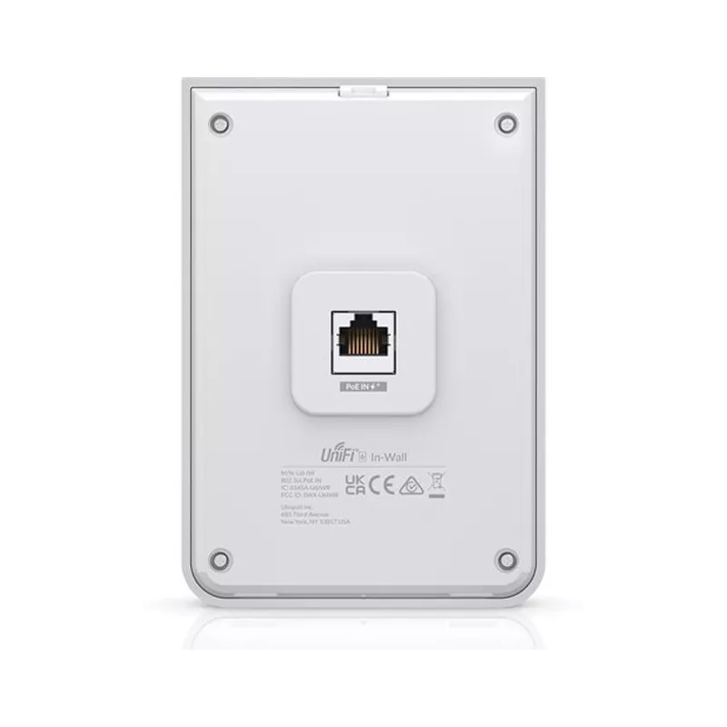 UBIQUITI UNIFI 6 IN-WALL. 2.4 GHZ, 5 GHZ, MAXIMUM DATA TRANSFER RATE: 4800 MBIT/S. SECURITY ALGORITHMS: WPA, WPA-ENTERPRISE, WPA-PSK, WPA2, WPA3. POWER OVER ETHERNET (POE). PRODUCT COLOUR: WHITE. POWER CONSUMPTION (MAX): 15.4 W