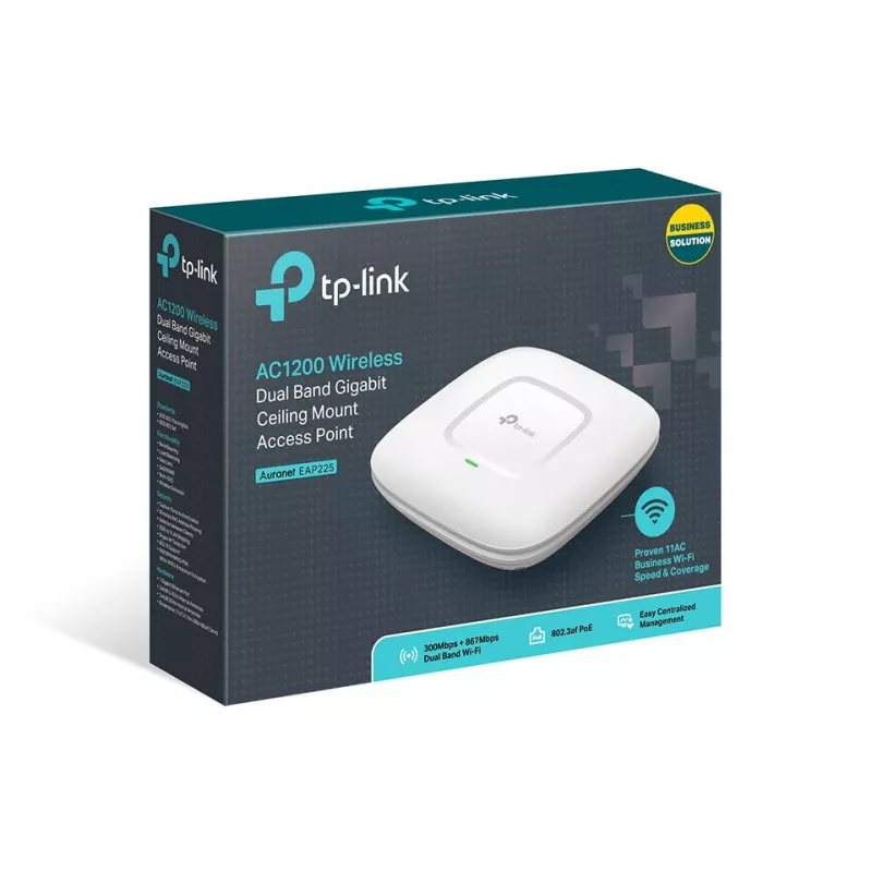 TP-LINK OMADA EAP225. 2.4 GHZ, 5 GHZ, MAXIMUM DATA TRANSFER RATE: 1350 MBIT/S. SECURITY ALGORITHMS: 64-BIT WEP, 128-BIT WEP, 152-BIT WEP, SSID, WPA, WPA-PSK, WPA2, WPA2-PSK. ETHERNET LAN DATA RATES: 10,100,1000 MBIT/S. POWER OVER ETHERNET (POE). PRODUCT C