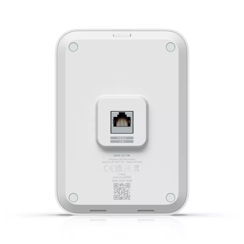 - UBIQUITI U7 IN-WALL. 2.4 GHZ, 5 GHZ, MAXIMUM DATA TRANSFER RATE: 4300 MBIT/S. SECURITY ALGORITHMS: PPSK. ETHERNET LAN DATA RATES: 2500 MBIT/S. POWER OVER ETHERNET (POE). PRODUCT COLOUR: WHITE. POWER CONSUMPTION (MAX): 13 W
