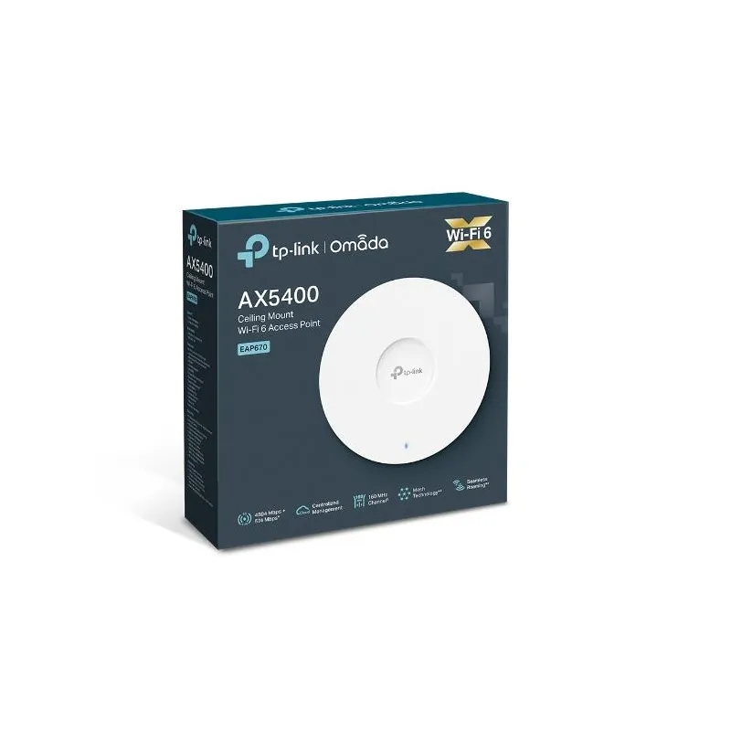 Access Point, TP-LINK, Omada, 5378 Mbps, IEEE 802.11a/b/g, IEEE 802.11n, IEEE 802.11ac, IEEE 802.11ax, 1xRJ45, EAP670
