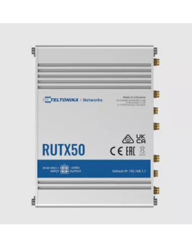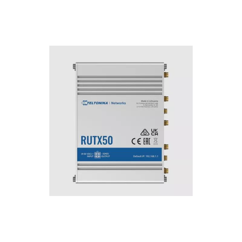 RUTX50000000 , Wi-Fi 5 (802.11ac) , WLAN data transfer rate (max) 867 Mbit/s , Ethernet WAN Yes , SIM card slot Yes , Ethernet LAN Yes , Ethernet LAN interface type Gigabit Ethernet , Mobile network generation 5G , Dual SIM support Yes , SIM card type MiniSIM , 5xEthernet LAN (RJ-45) ports , USB port Yes , AC adapter included Yes , Antenna design External , Power source type DC , Operating temperature (T-T) -40 - 75 °C , Weight 533 g