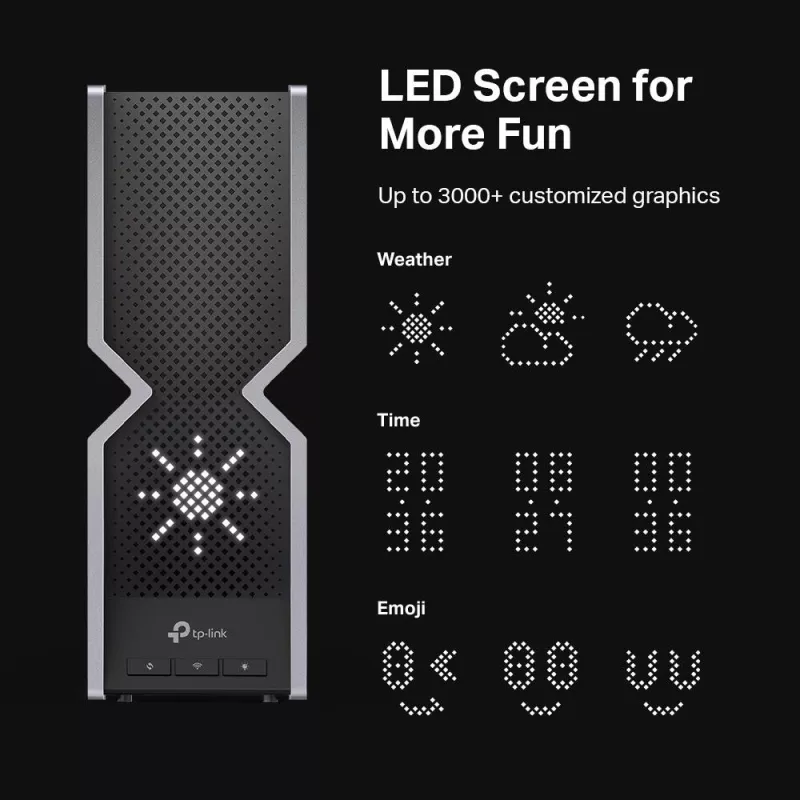 Wireless Router , Available bandwidth 19000 Mbps , Data transmission speed 11530 Mbps , Mesh , Antenna Type Built-in , Number of antennas 8 , Wireless Frequency Range 11520 Mbps (6 GHz) + 5760 Mbps (5 GHz) + 1376 Mbps (2.4 GHz) , Power supply requirements 15 V ⎓ 5 A , Dimensions 302 × 262.5 × 96 mm