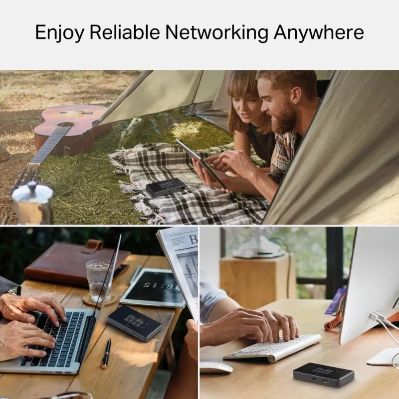 Type Router , Data transmission speed 3600 Mbps , Antenna Type Built-in , Wireless Frequency Range 2.4 GHz, 5 GHz, 6 GHz , 3G , 4G , Included Accessories 5G AXE3600 Mobile Router M8550Power AdapterUSB-C Cable4680 mAh BatteryQuick Installation Guide , Power supply requirements 4680 mAh Rechargeable Battery , Colour Black , Dimensions 135 × 73.7 × 20.5 mm