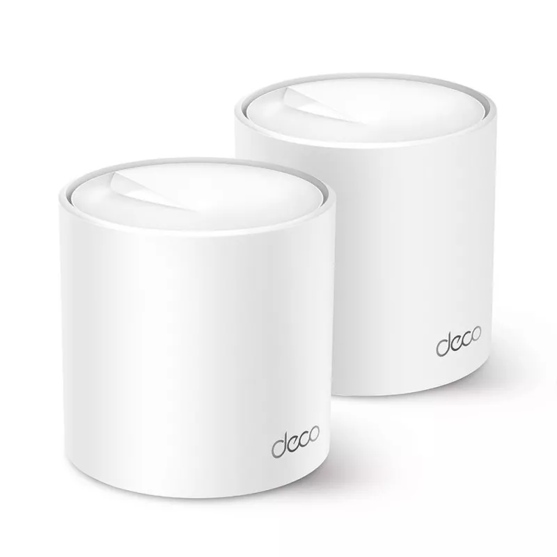 Deco X50 , Wireless Router , 2-pack , Available bandwidth 2900 Mbps , Data transmission speed 2402 Mbps , Mesh , Antenna Type Built-in , Number of antennas 2 , Wireless Frequency Range 2.4 GHz - 5 GHz , Wireless Transmit Power 30 dBm , Colour White , Dimensions 110 × 110 × 114 mm