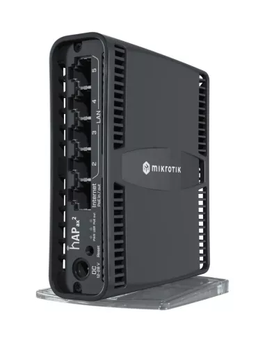 HAP AX2 , Wireless Router , Available bandwidth 1800 Mbps , Antenna Gain 4.5 dB , Wireless Frequency Range 2.4 GHz/5 GHz , Included Accessories 24 V 1.2 A power adapter, Fastening set, Case base , Power supply requirements 2 (DC jack, PoE-IN); 12-28 V; 27 W , Dimensions 120 x 101 x 37 mm