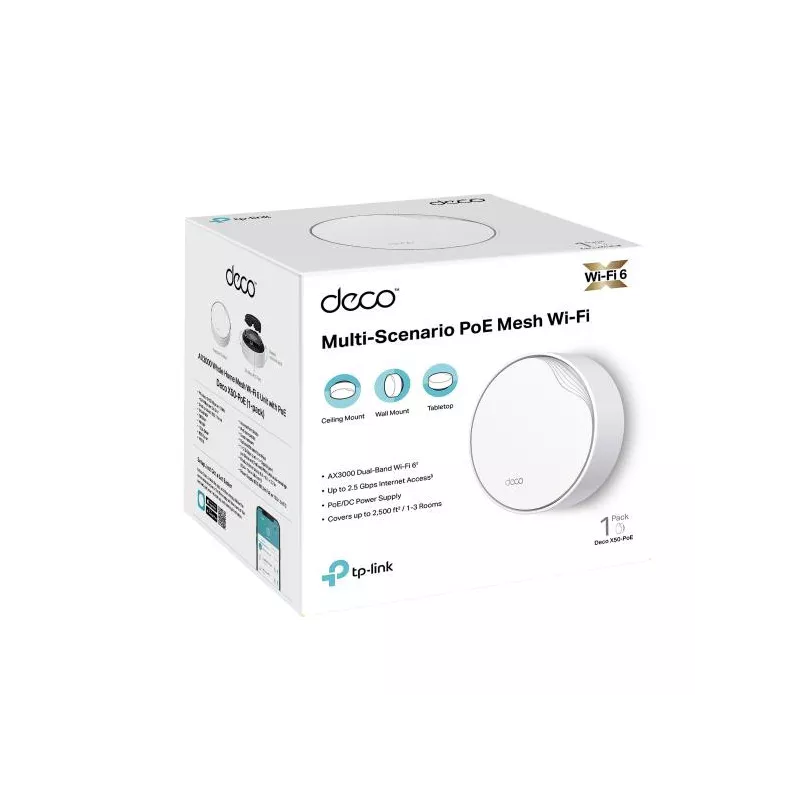 Wireless Router, TP-LINK, Wireless Router, 3000 Mbps, Mesh, Wi-Fi 6, 1x10/100/1000M, 1x2.5GbE, DHCP, DECOX50-POE(1-PACK)