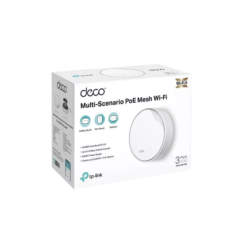 Wireless Router, TP-LINK, Wireless Router, 3-pack, 3000 Mbps, Mesh, Wi-Fi 6, 1x10/100/1000M, 1x2.5GbE, DHCP, DECOX50-POE(3-PACK