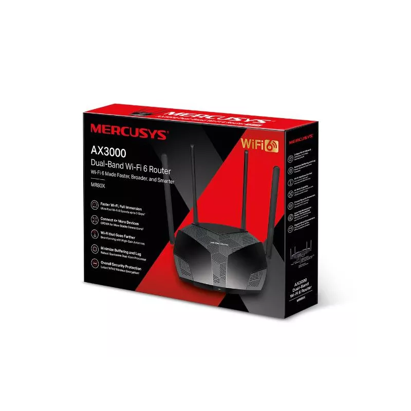 Dual-band (2.4 GHz / 5 GHz) , Wi-Fi 6 (802.11ax) , WLAN data transfer rate (max) 3000 Mbit/s , Ethernet WAN Yes , Ethernet LAN Yes , Ethernet LAN interface type Gigabit Ethernet , 3xEthernet LAN (RJ-45) ports , AC adapter included Yes , Antenna design External , Power source type AC , Operating temperature (T-T) 0 - 40 °C