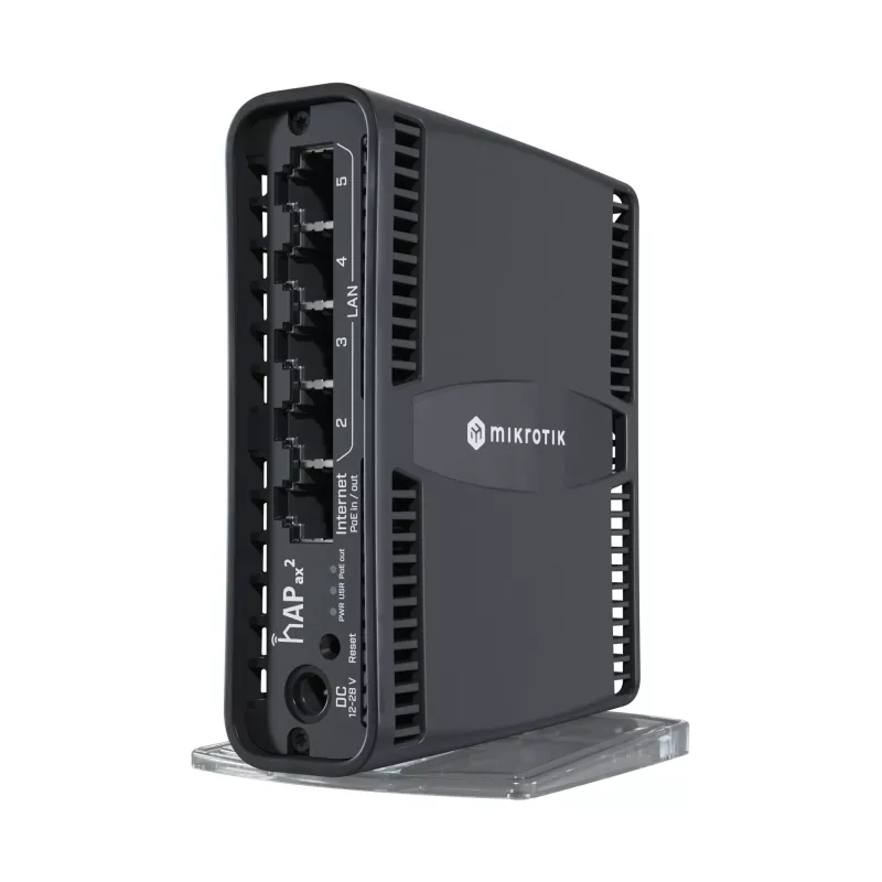 HAP AX2 , Dual-band (2.4 GHz / 5 GHz) , Wi-Fi 6 (802.11ax) , WLAN data transfer rate (max) 1200 Mbit/s , Ethernet WAN Yes , Ethernet LAN Yes , Ethernet LAN interface type Gigabit Ethernet , 5xEthernet LAN (RJ-45) ports , AC adapter included Yes , Power source type DC,PoE , Operating temperature (T-T) -40 - 50 °C