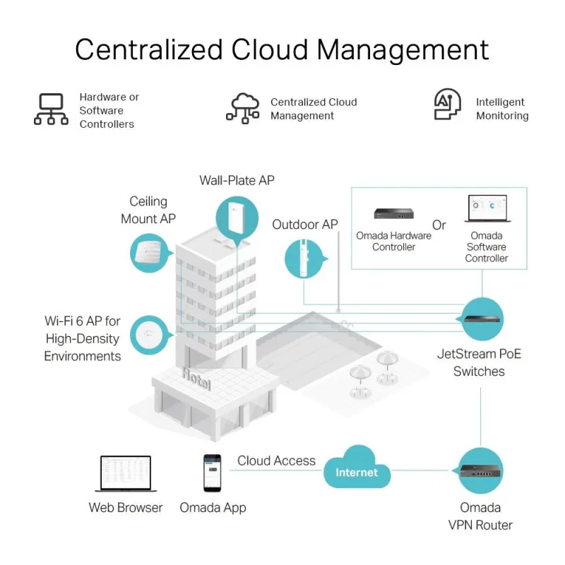 TP-LINK OMADA GIGABIT VPN ROUTER. NETWORKING STANDARDS: IEEE 802.1Q, IEEE 802.3, IEEE 802.3AB, IEEE 802.3U, IEEE 802.3X, ETHERNET INTERFACE TYPE: GIGABIT ETHERNET, CABLING TECHNOLOGY: 10/100/1000BASE-T(X). ROUTING PROTOCOLS: RIP-1, RIP-2, MANAGEMENT PROTO