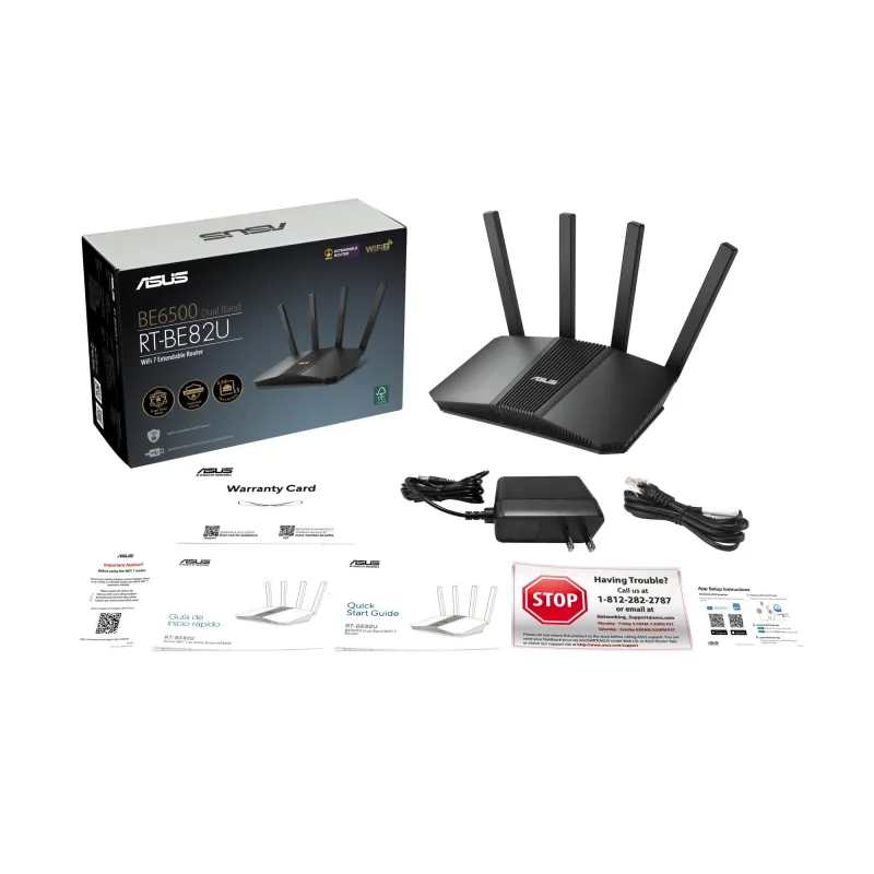 RT-BE82U BE6500 , Dual-band (2.4 GHz / 5 GHz) , Wi-Fi 7 (802.11be) , WLAN data transfer rate (max) 6500 Mbit/s , Ethernet WAN Yes , 3G/4G USB modem compatibility Yes , Ethernet LAN Yes , Ethernet LAN interface type 2.5 Gigabit Ethernet , 4xEthernet LAN (RJ-45) ports , USB port Yes , Antenna design External , Power source type DC , Weight 502 g