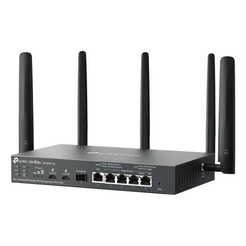 - TP-LINK ER706WP-4G. WAN CONNECTION TYPE: RJ-45. WI-FI BAND: DUAL-BAND (2.4 GHZ / 5 GHZ), WLAN DATA TRANSFER RATE (MAX): 300 MBIT/S, MODULATION: OFDMA. ETHERNET LAN INTERFACE TYPE: GIGABIT ETHERNET, ETHERNET LAN DATA RATES: 10,100,1000 MBIT/S, VPN SUPPORT: