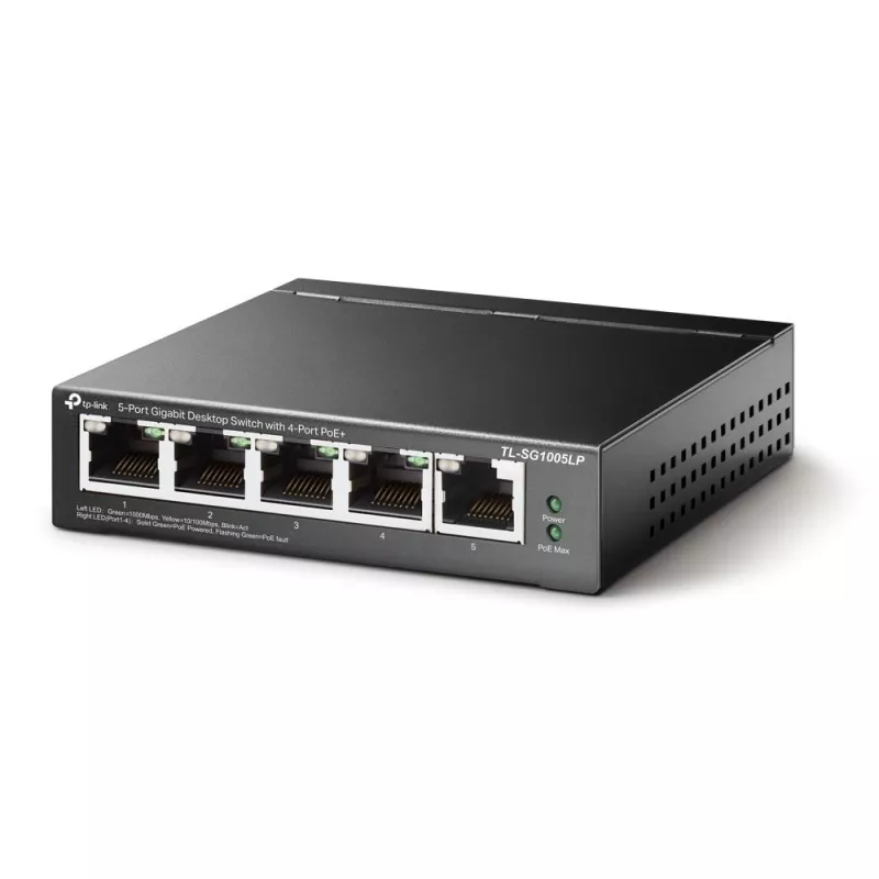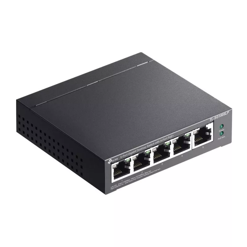 PoE ports 1 , Switching capacity 10 Gbps , Forwarding rate 7.44 Mpps , Switching method Store-and-forward , Included Accessories TL-SG1005LP, Power Adapter, Installation Guide , Dimensions 99.8×98×25 mm , Product Net Weight 0.4 kg